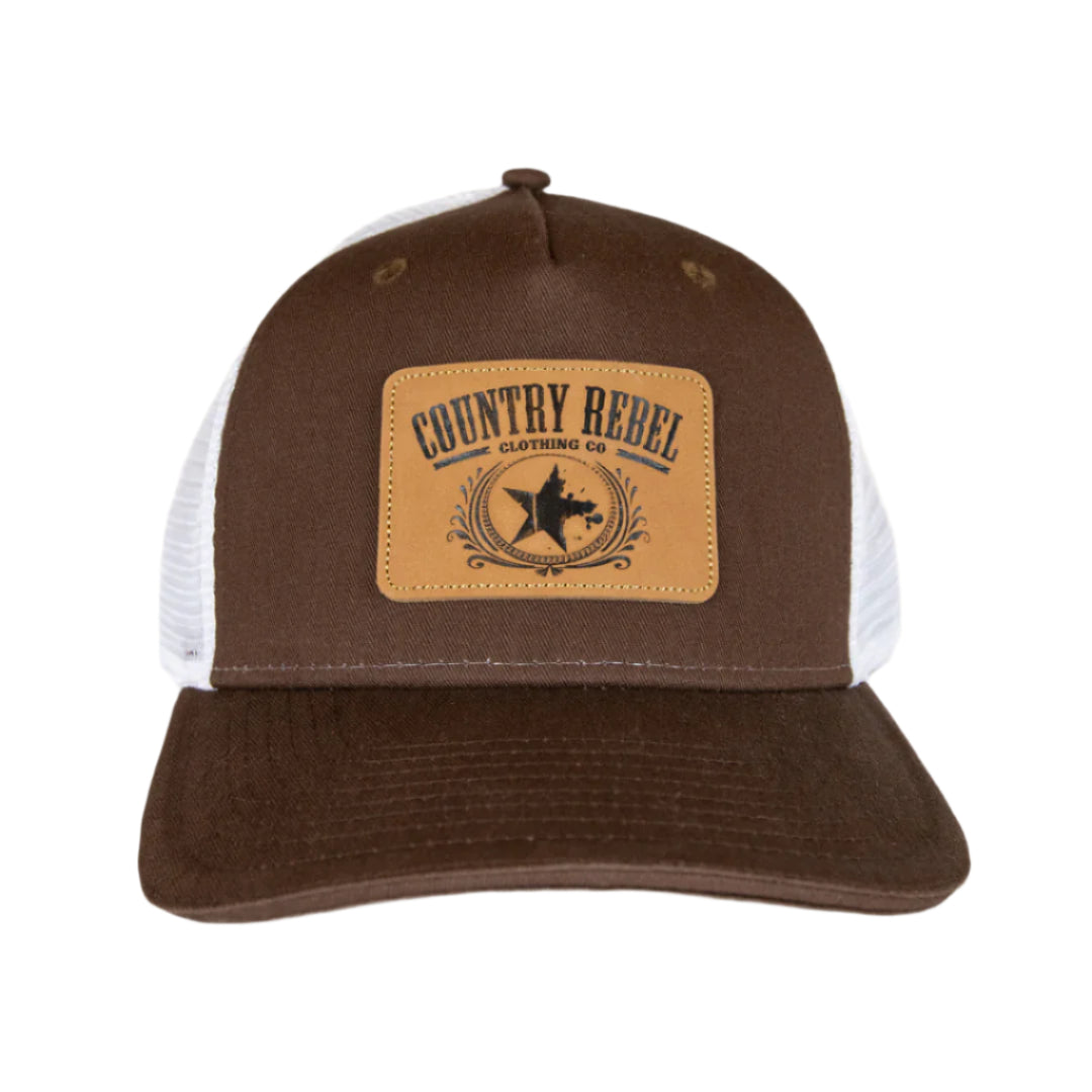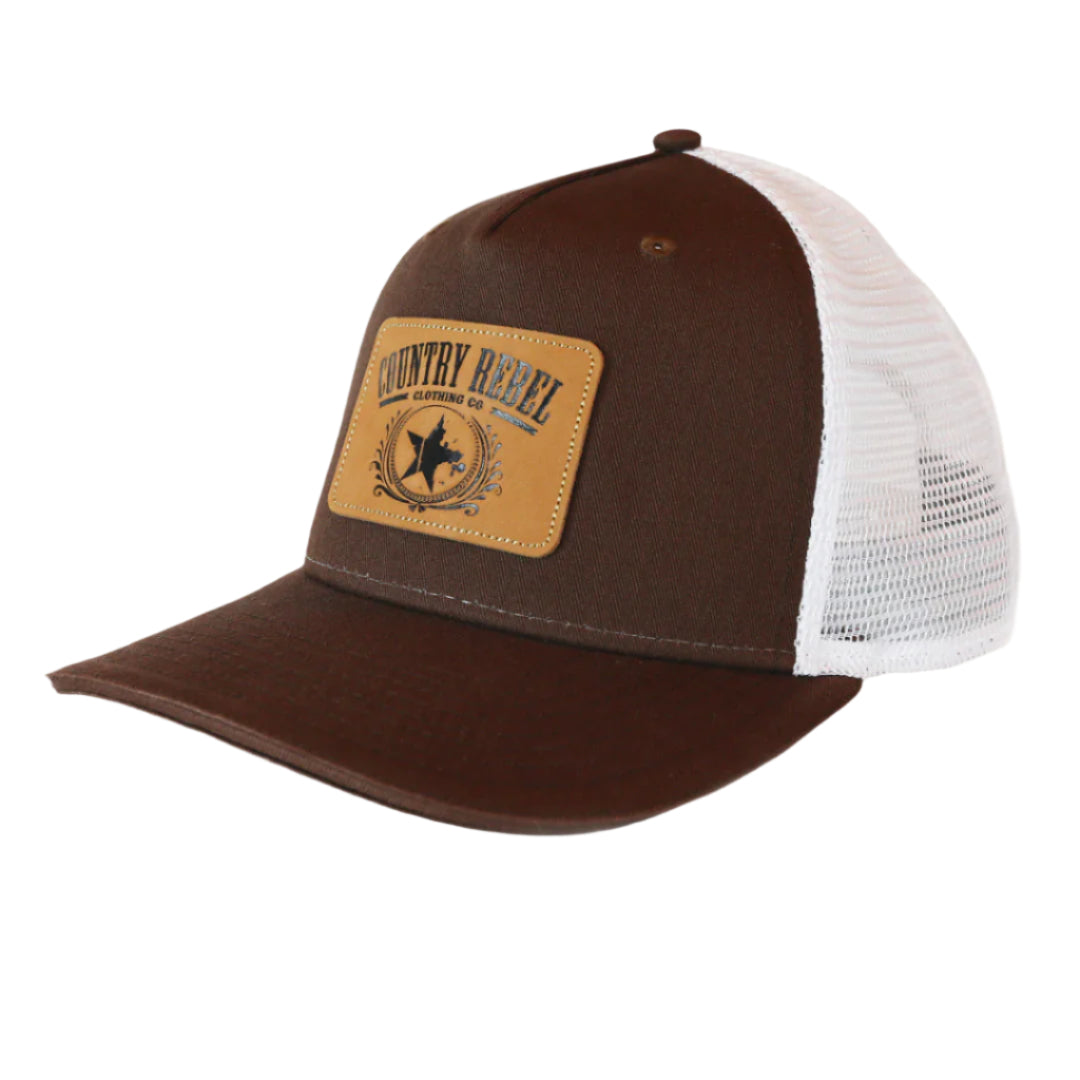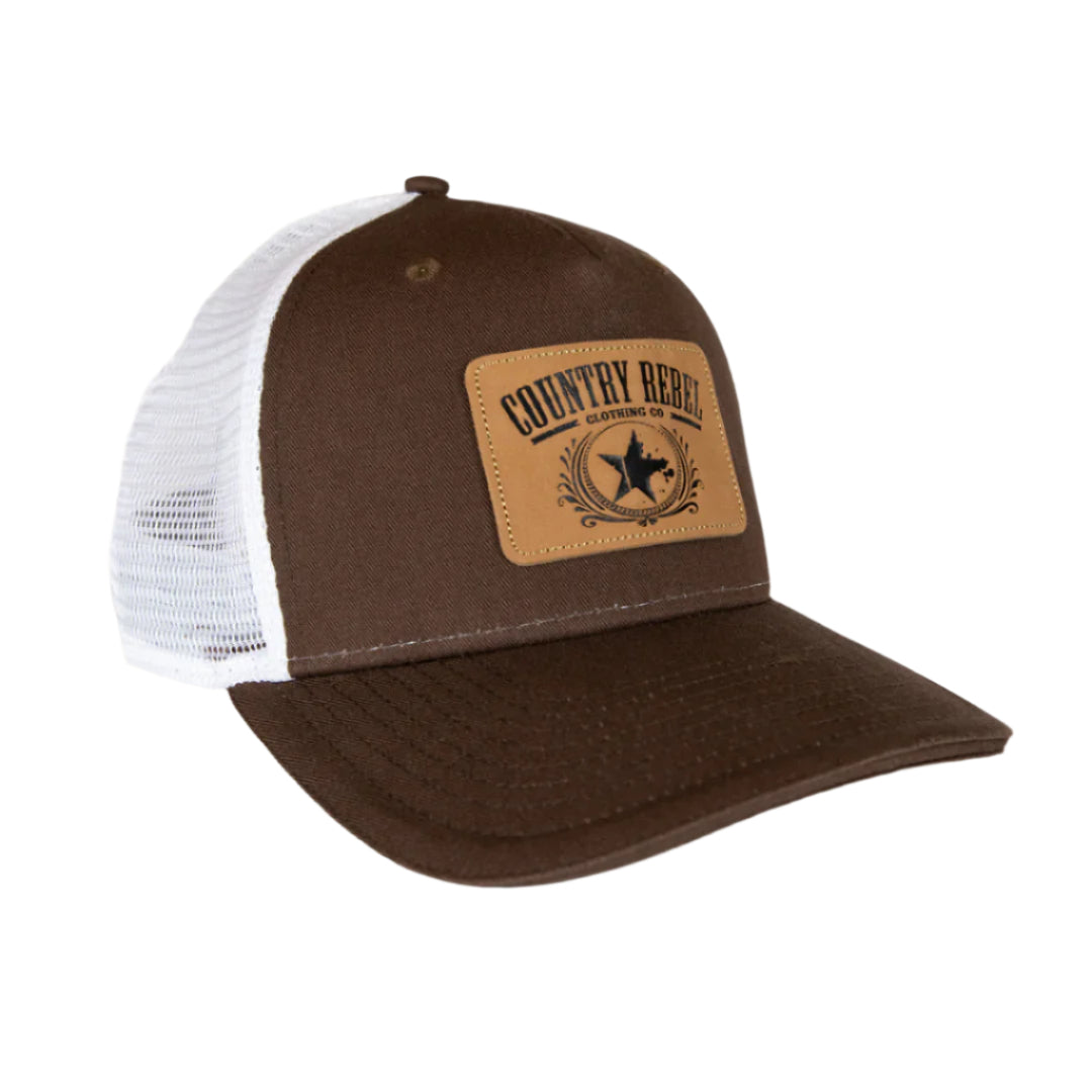 Country Rebel Snapback Brown/White - Leather Patch